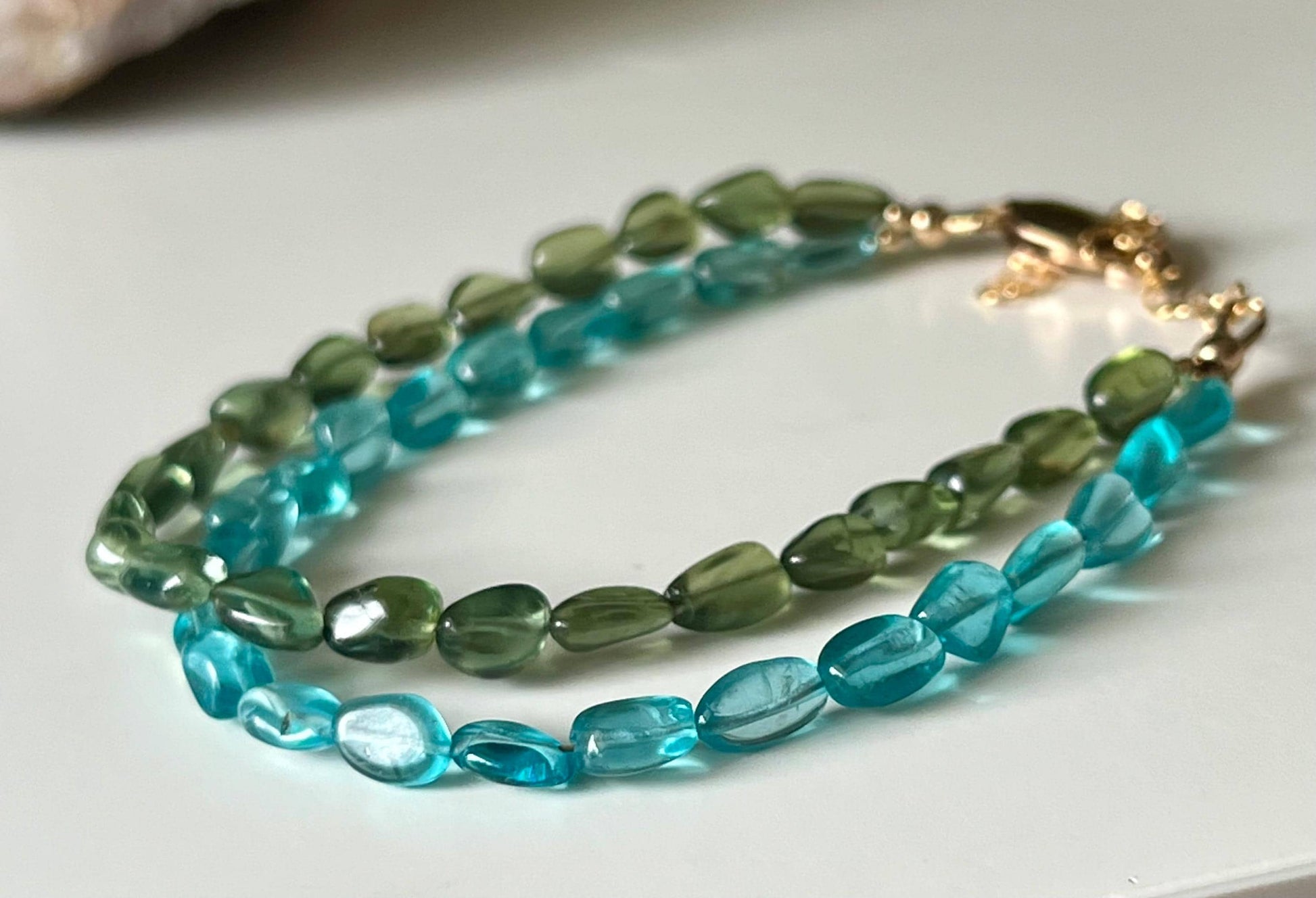 Blue and Green Apatite Double Strand Beaded Bracelet