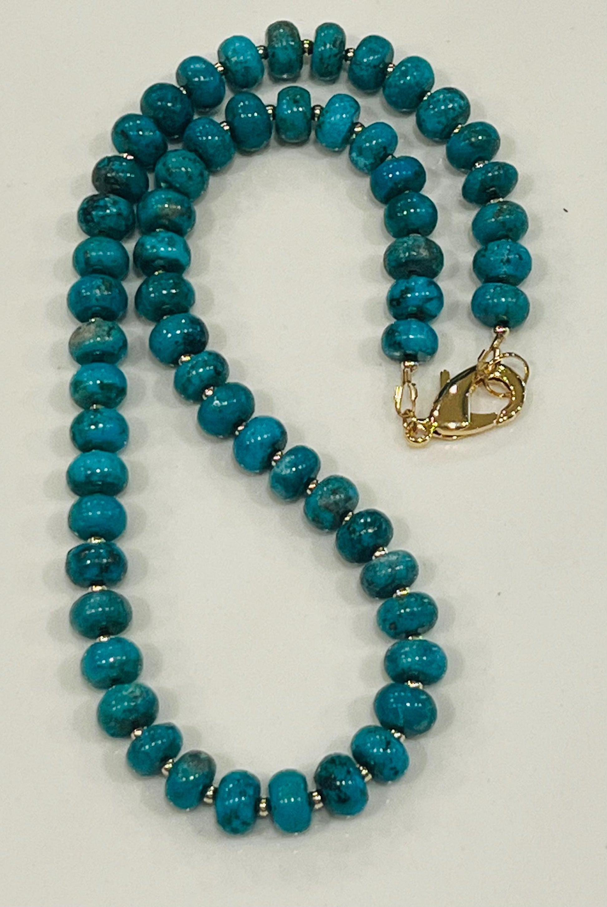 Blue Turquoise Beaded Necklace: 18k Gold Filled Clasp, Gemstone Rondelle