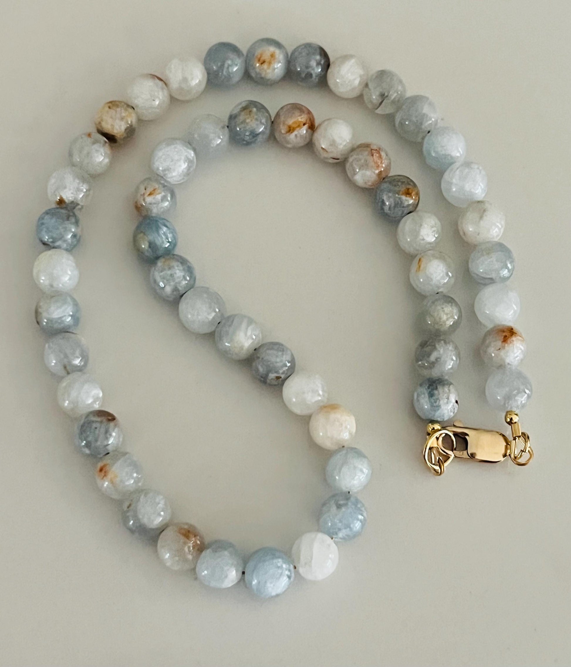 Celestite Beaded Necklace: 8mm Smooth Round Stones, Gold Filled Clasp
