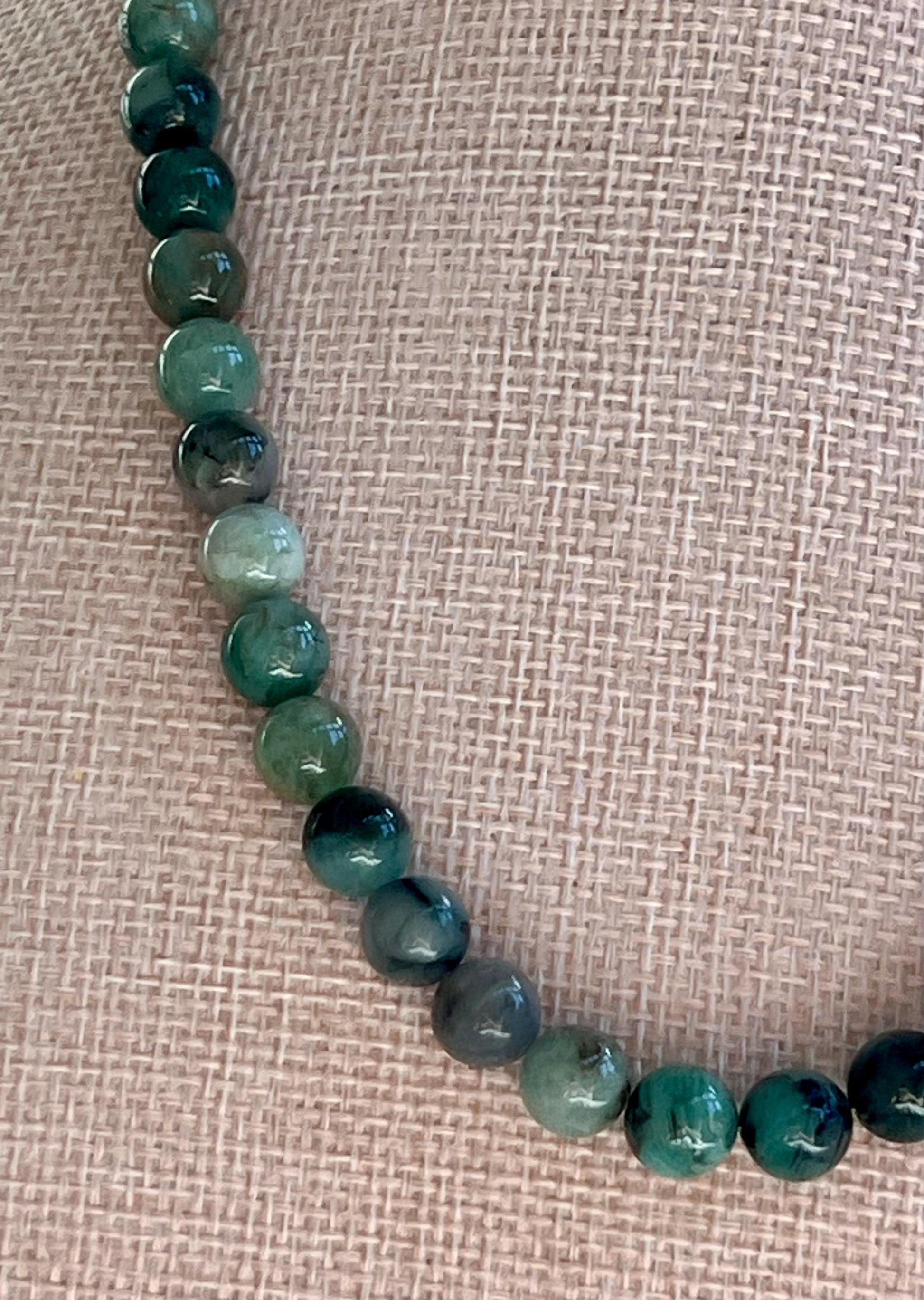 Natural Gemstone Necklace. 8mm smooth round natural Grade A Emerald beaded necklace with a gold filled lobster clasp. Arrives thoughtfully packaged in an eco-friendly kraft box wrapped in ribbon, ready for gifting or keeping for yourself.