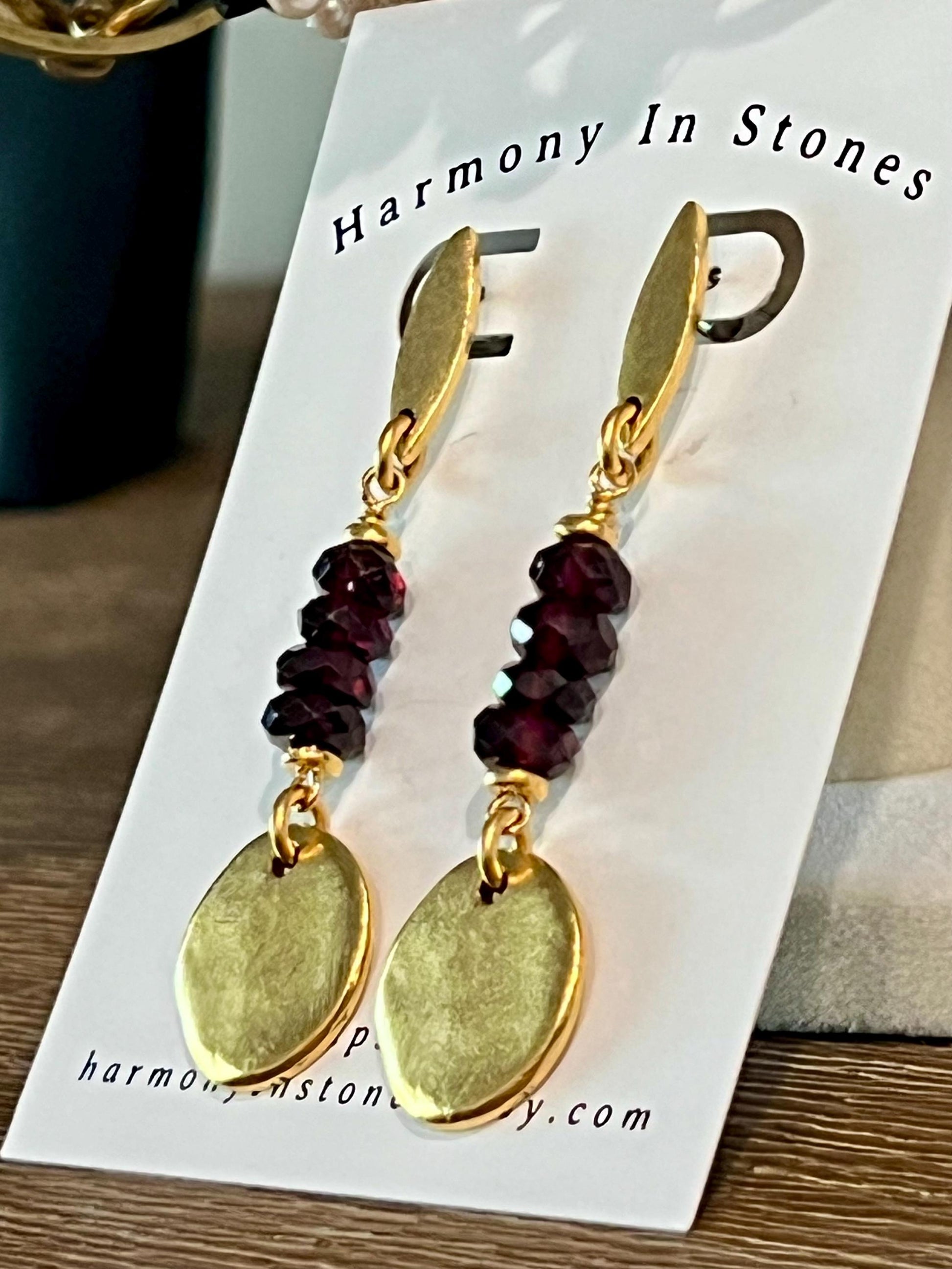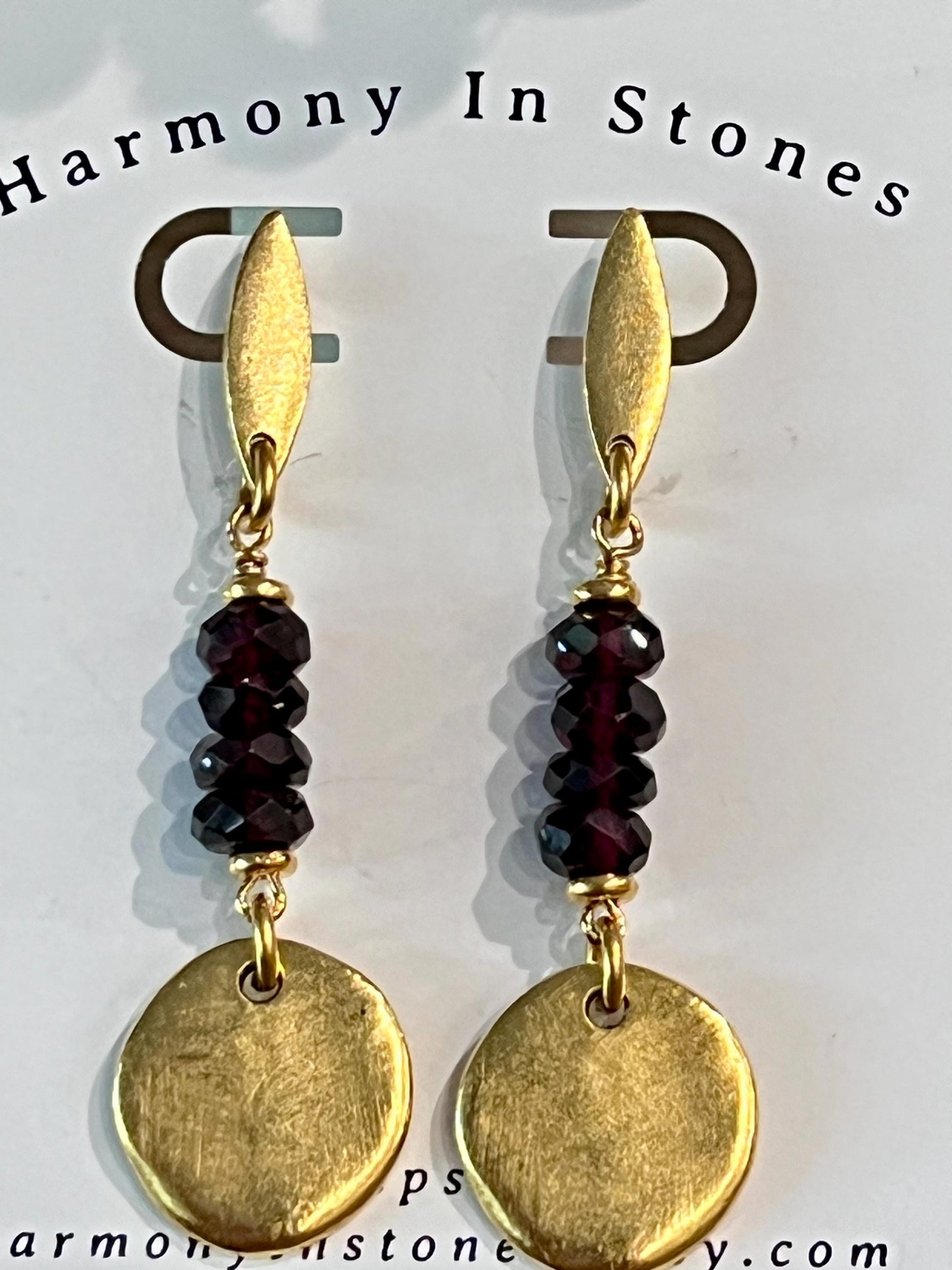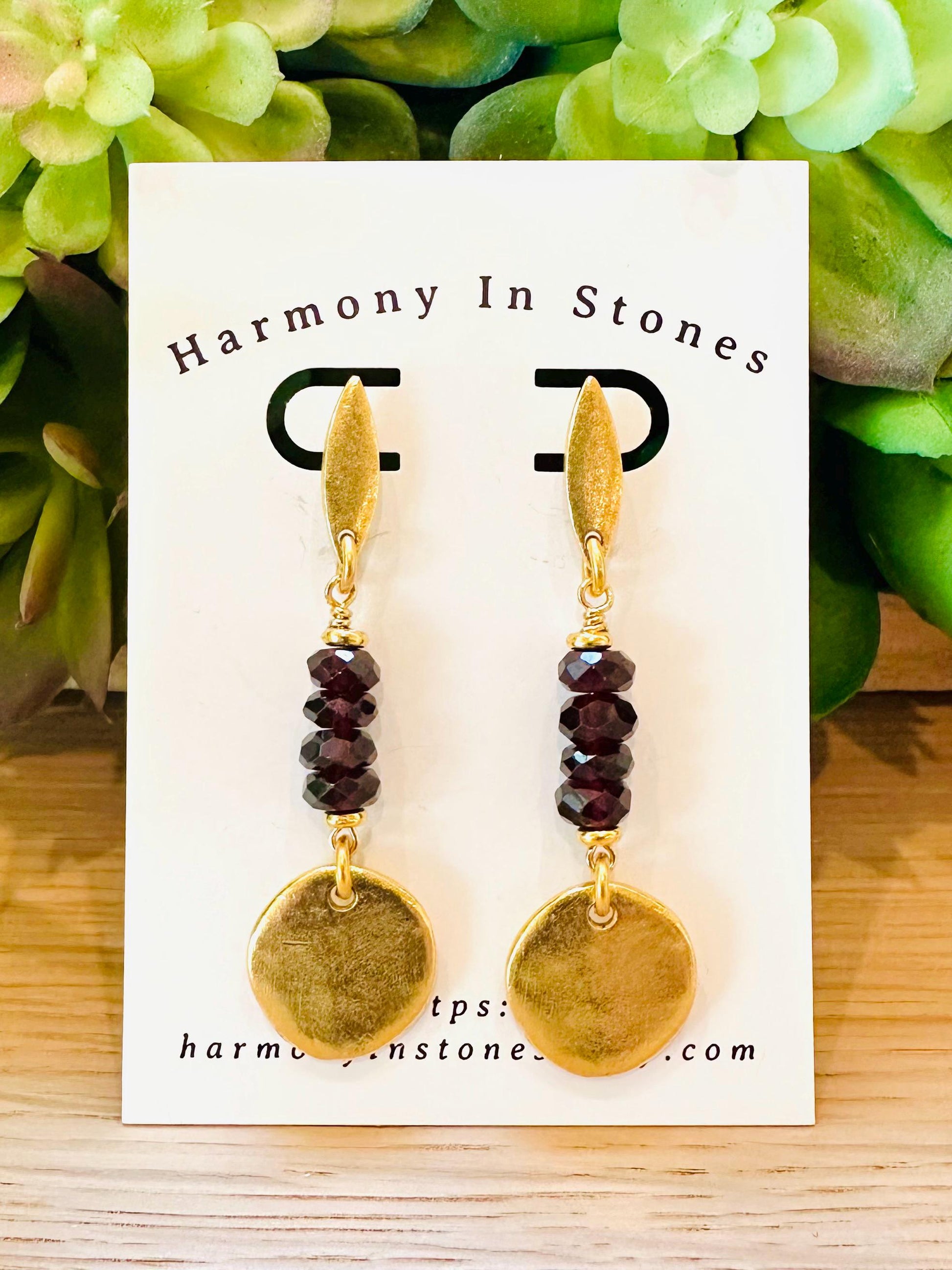 Garnet Coin Drop Earrings: Gold Plated Boho Earrings (2.5 inch)