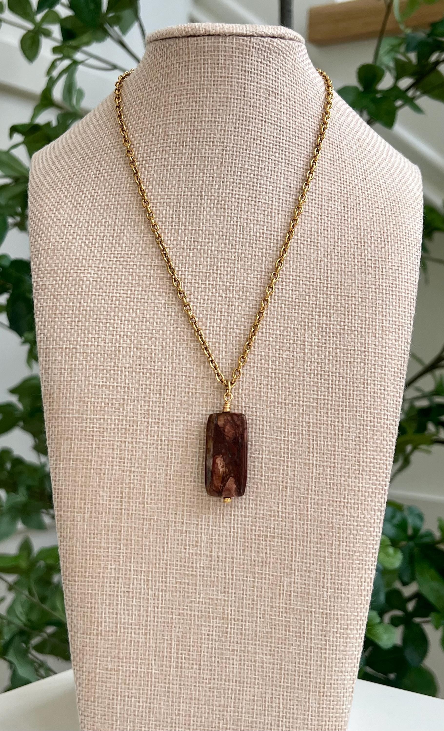 Gold Classic Cable Chain with Pendant Red Creek Jasper Drop Pendant Statement Necklace Red Jasper Pendant Layering Necklace