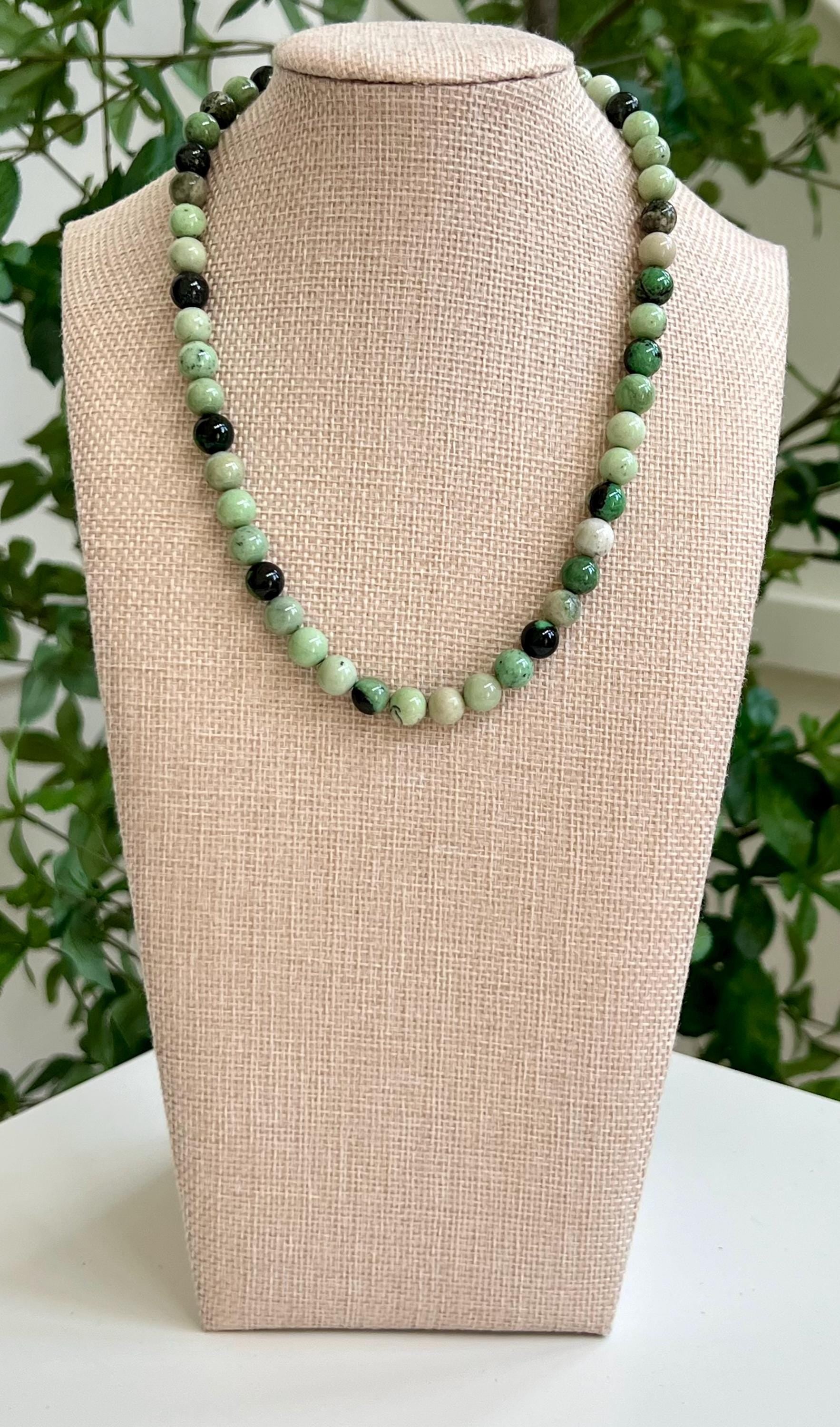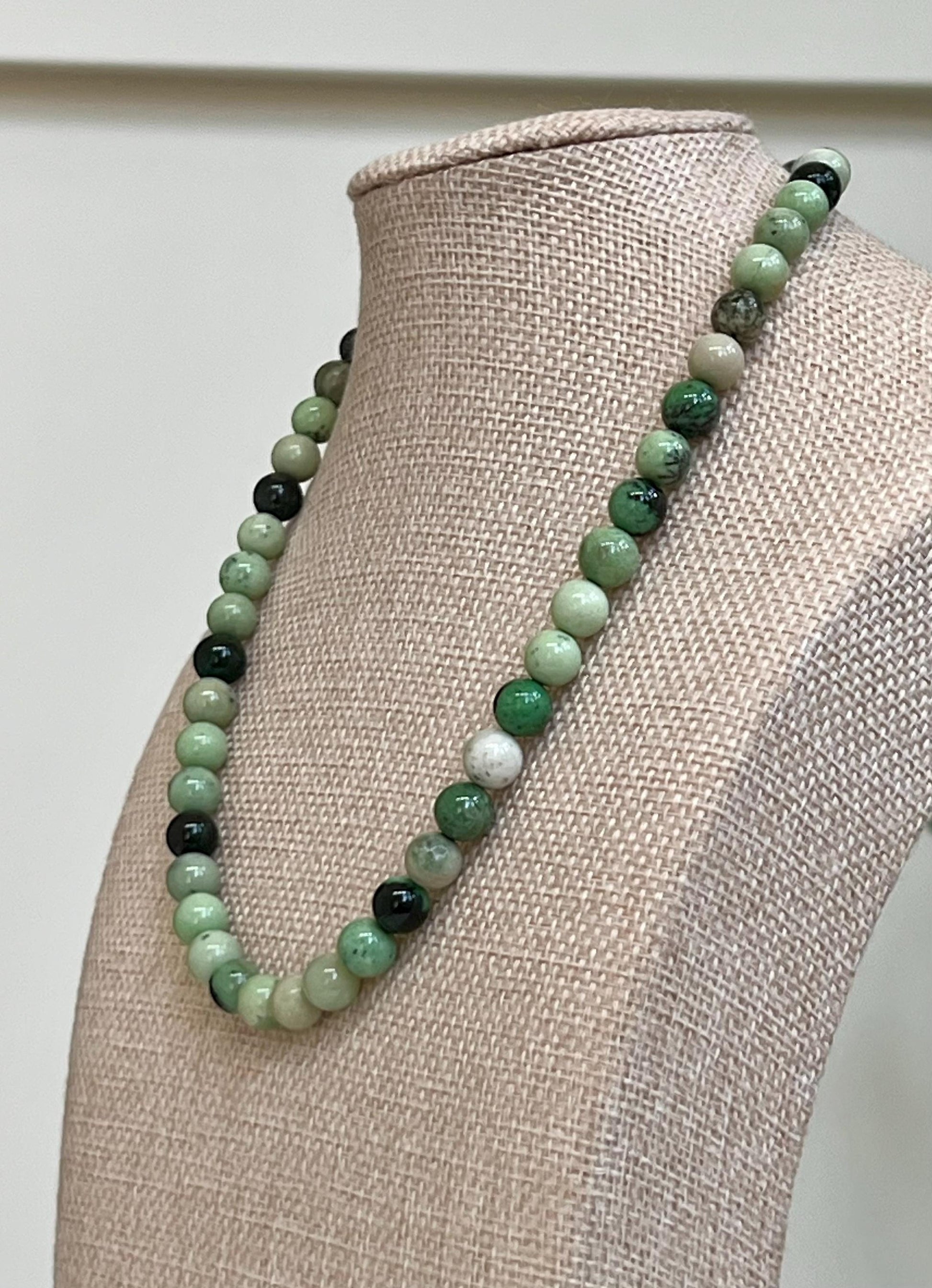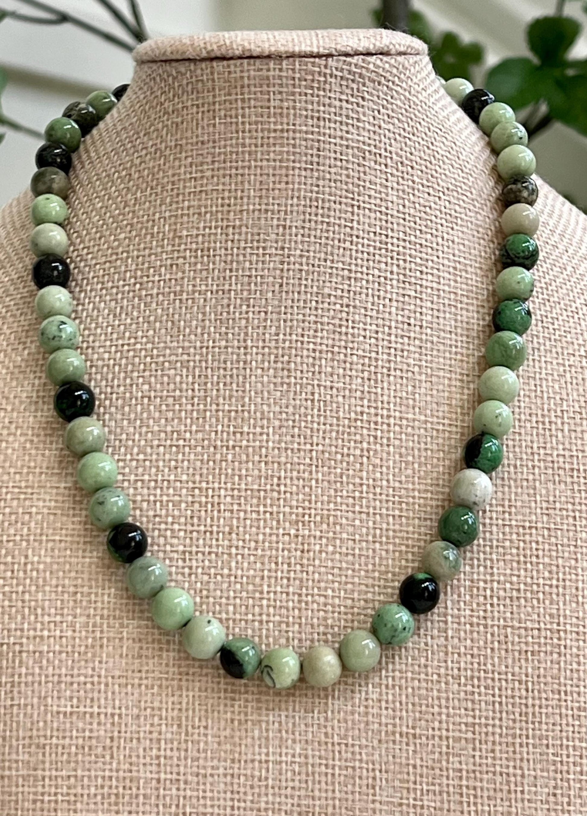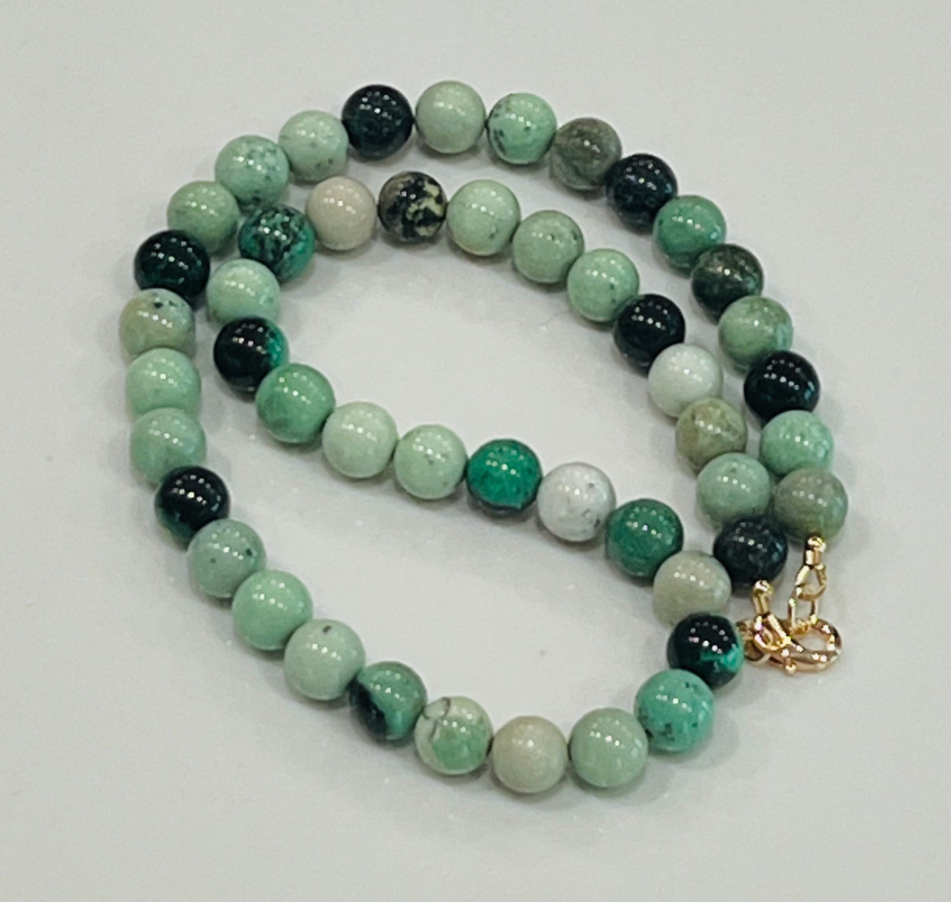 Natural Gemstone Necklace. Natural Hydrogrossular Garnet Smooth Round 8mm Garnet beaded necklace with an 18k gold filled lobster clasp. Arrives thoughtfully packaged in an eco-friendly kraft box wrapped in ribbon, ready for gifting or keeping for yourself.