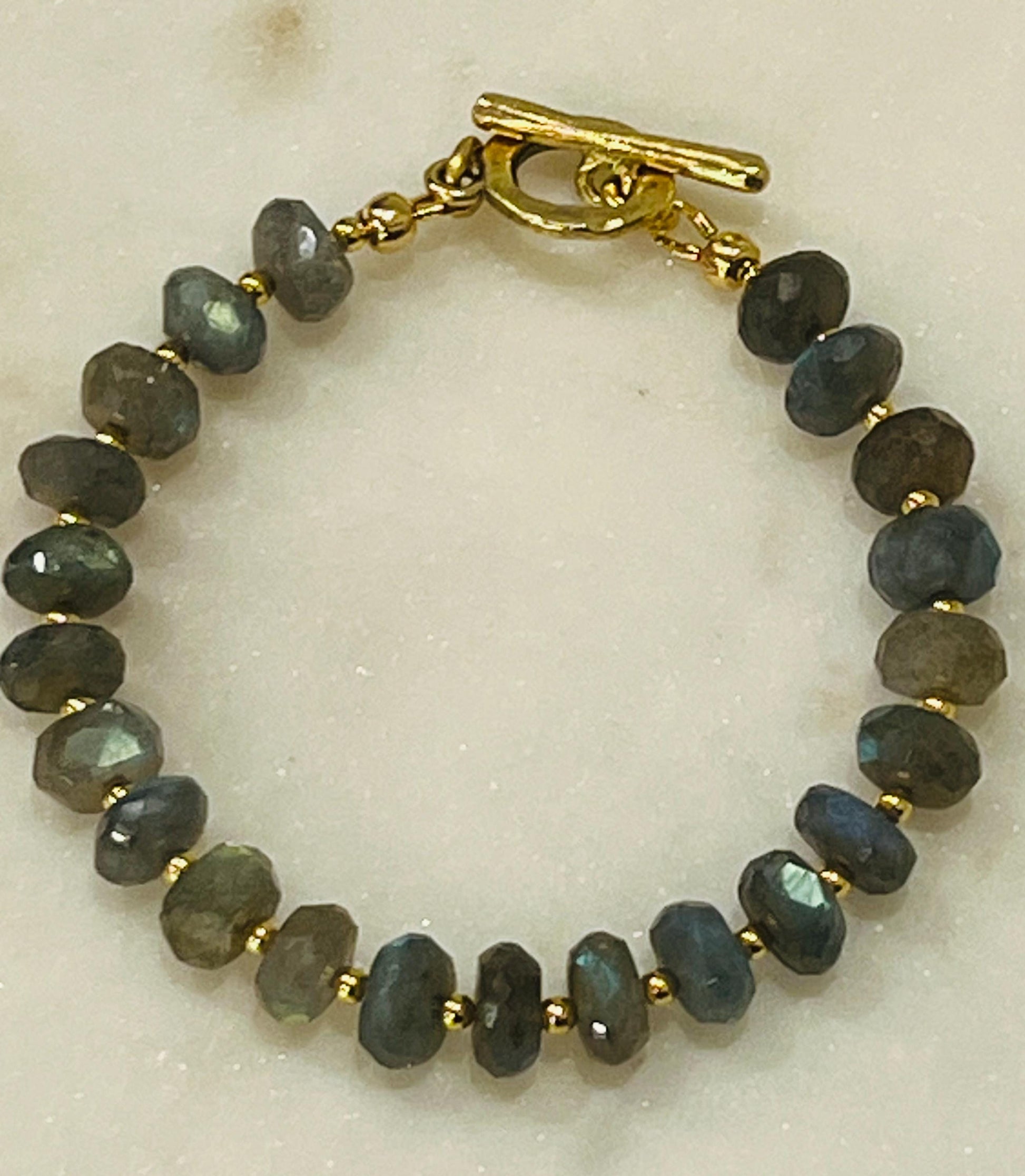 Labradorite Beaded Bracelet: 8mm Faceted Rondelle with Gold Toggle