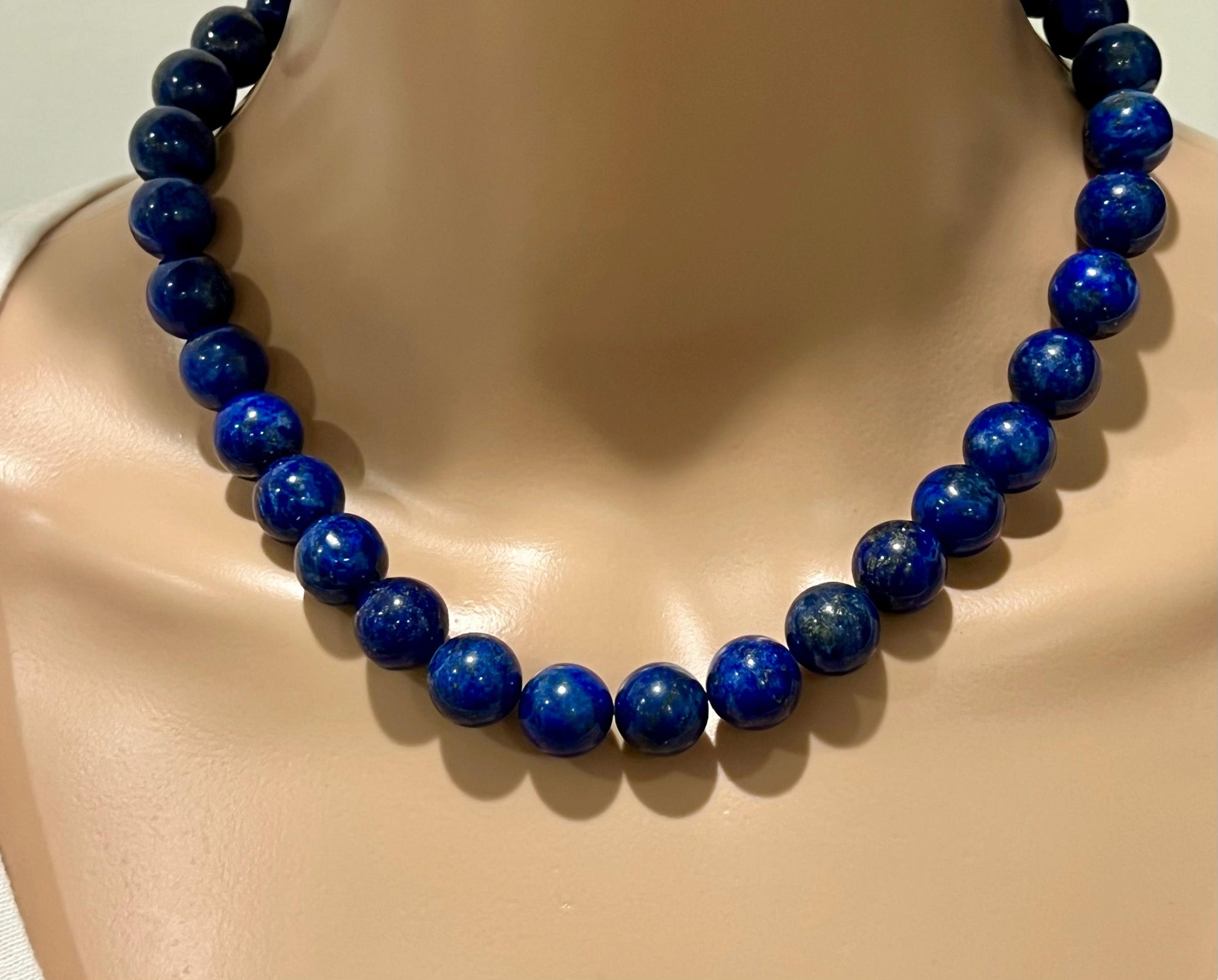 Natural Gemstone Necklace. 12mm Smooth Round Lapis Lazuli beaded necklace with 18k Gold Filled clasp. Arrives thoughtfully packaged in an eco-friendly kraft box wrapped in ribbon, ready for gifting or keeping for yourself.