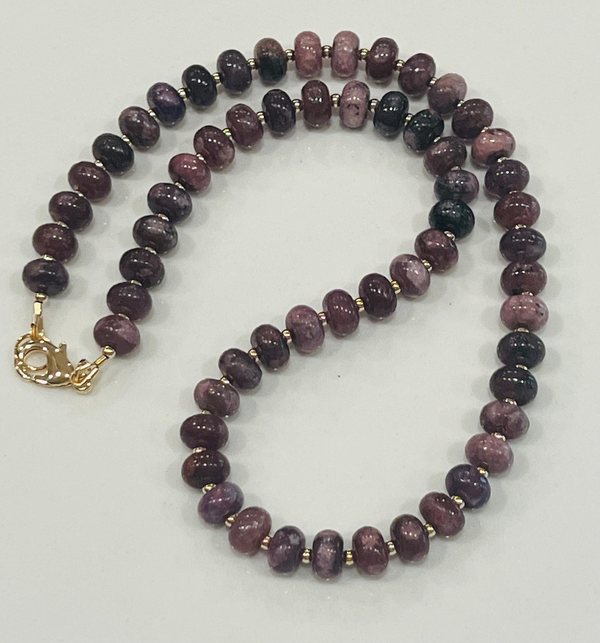 Lepidolite Beaded Necklace 18k Gold Filled Clasp/Accent Beads 5x8mm Smooth Rondelle Beads Gorgeous Purple Natural Gemstone Necklace