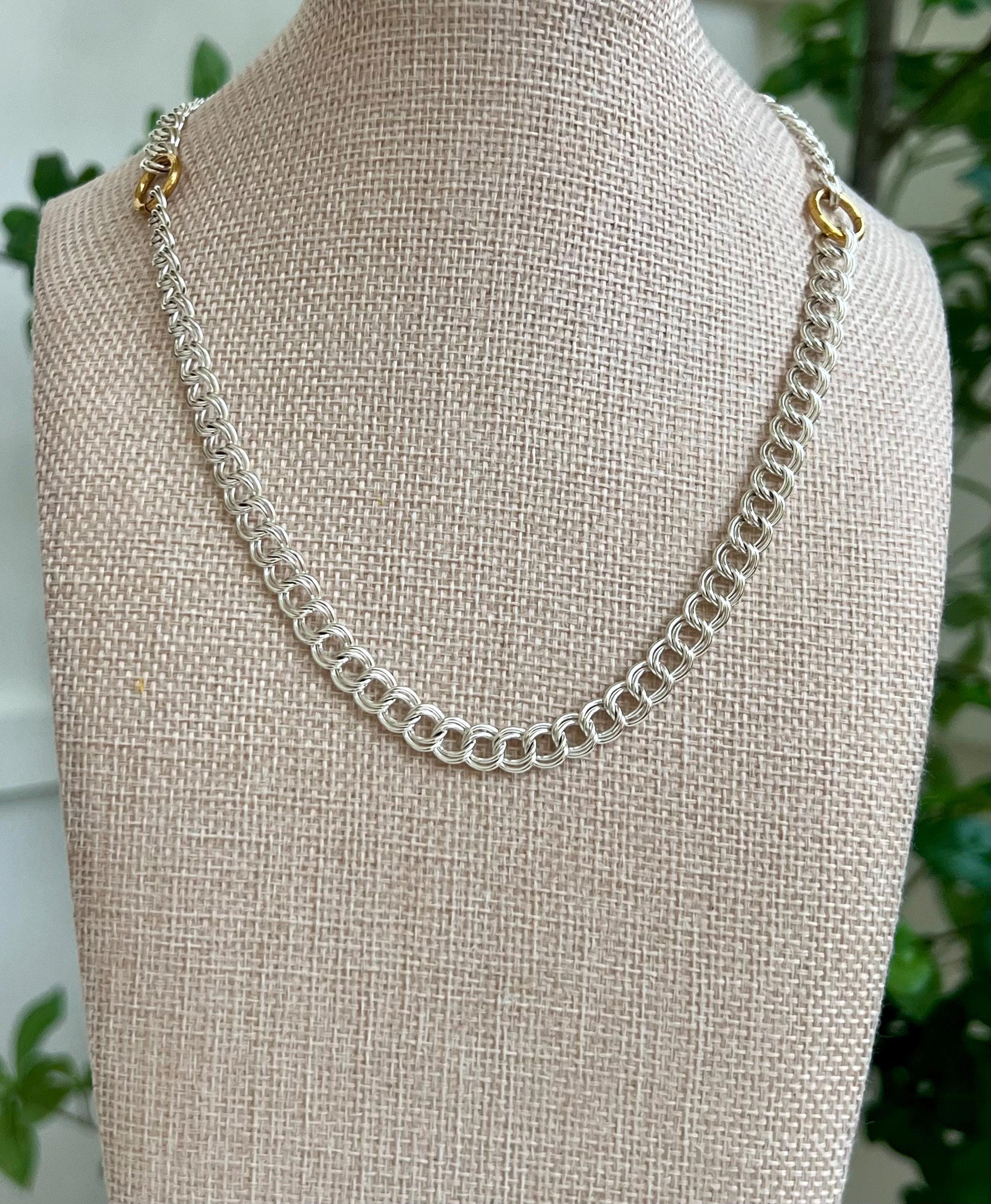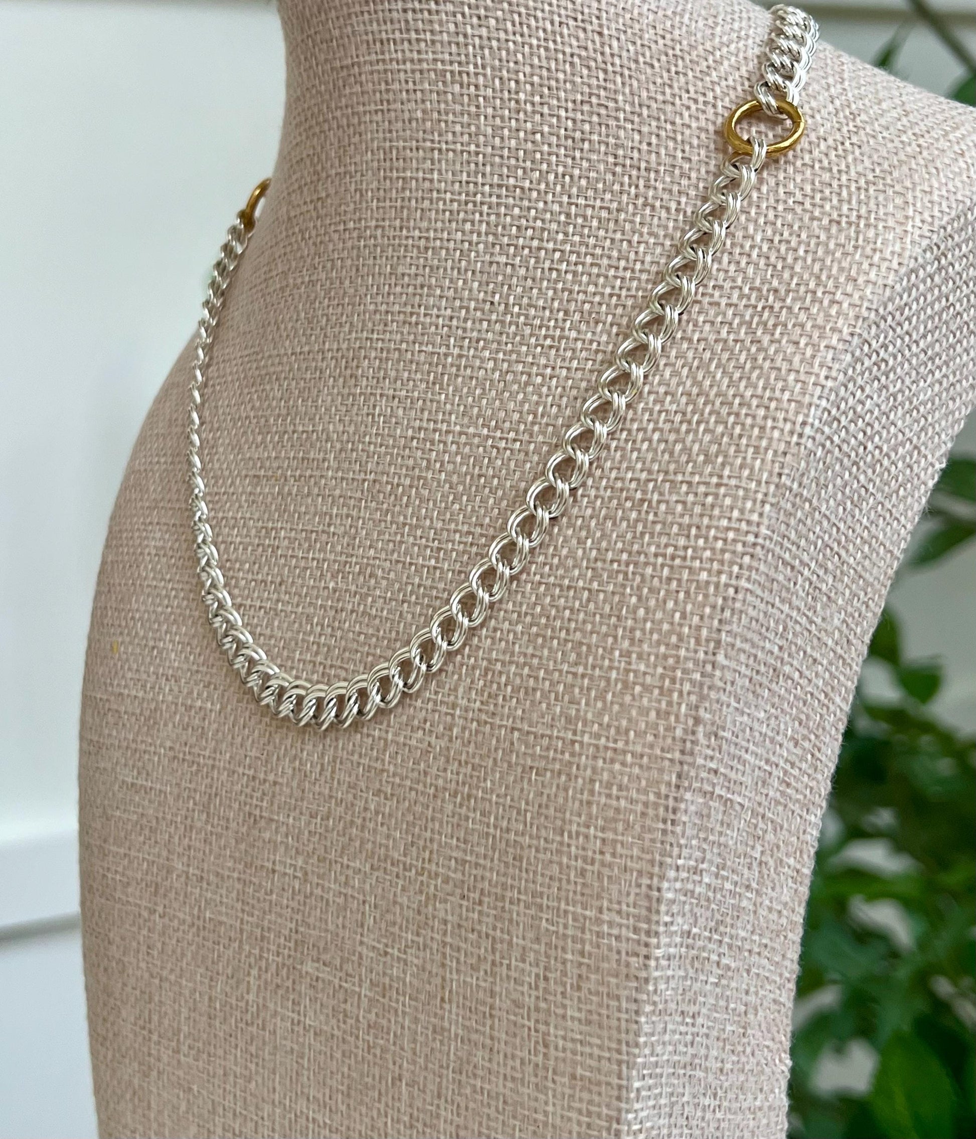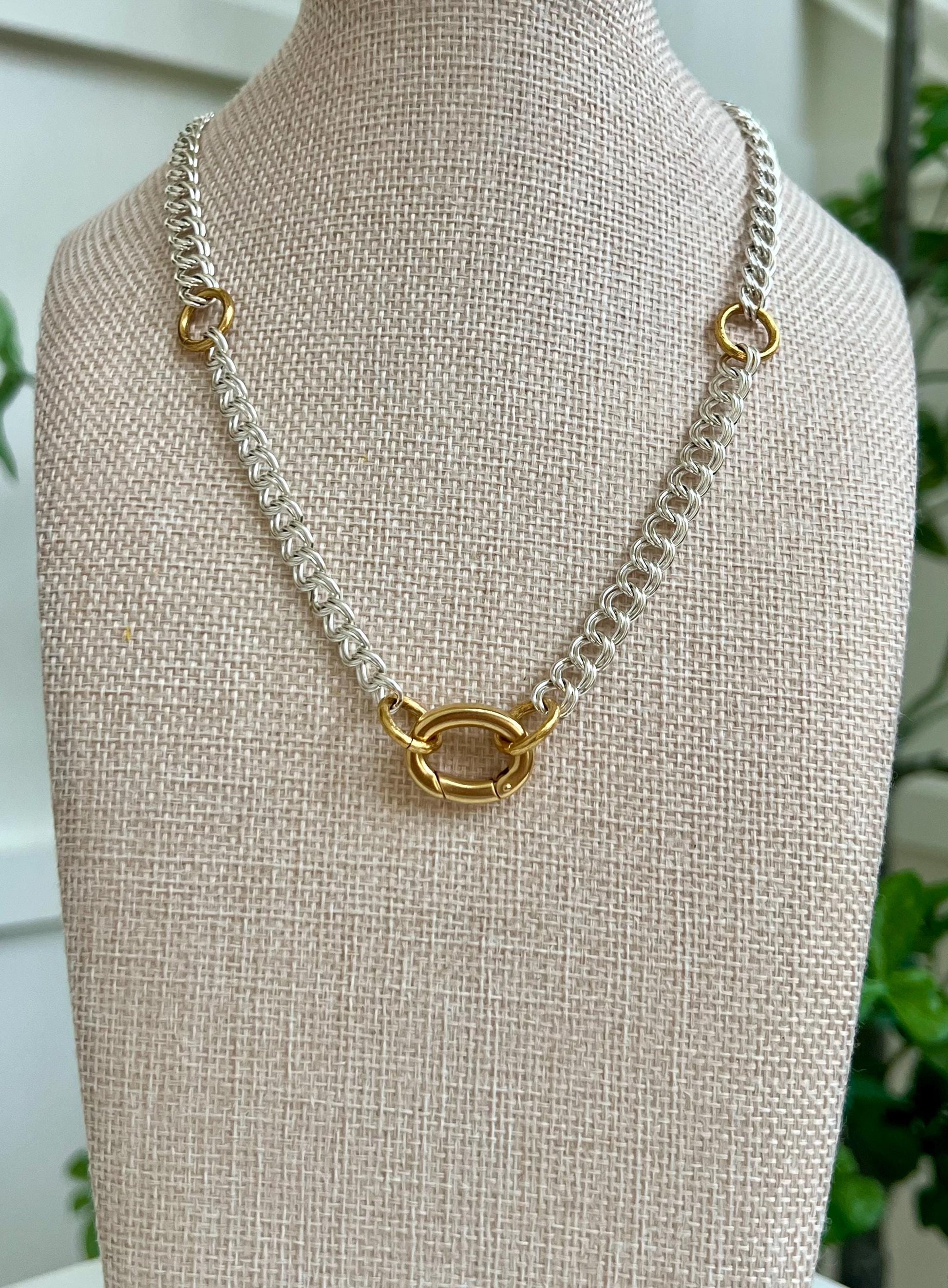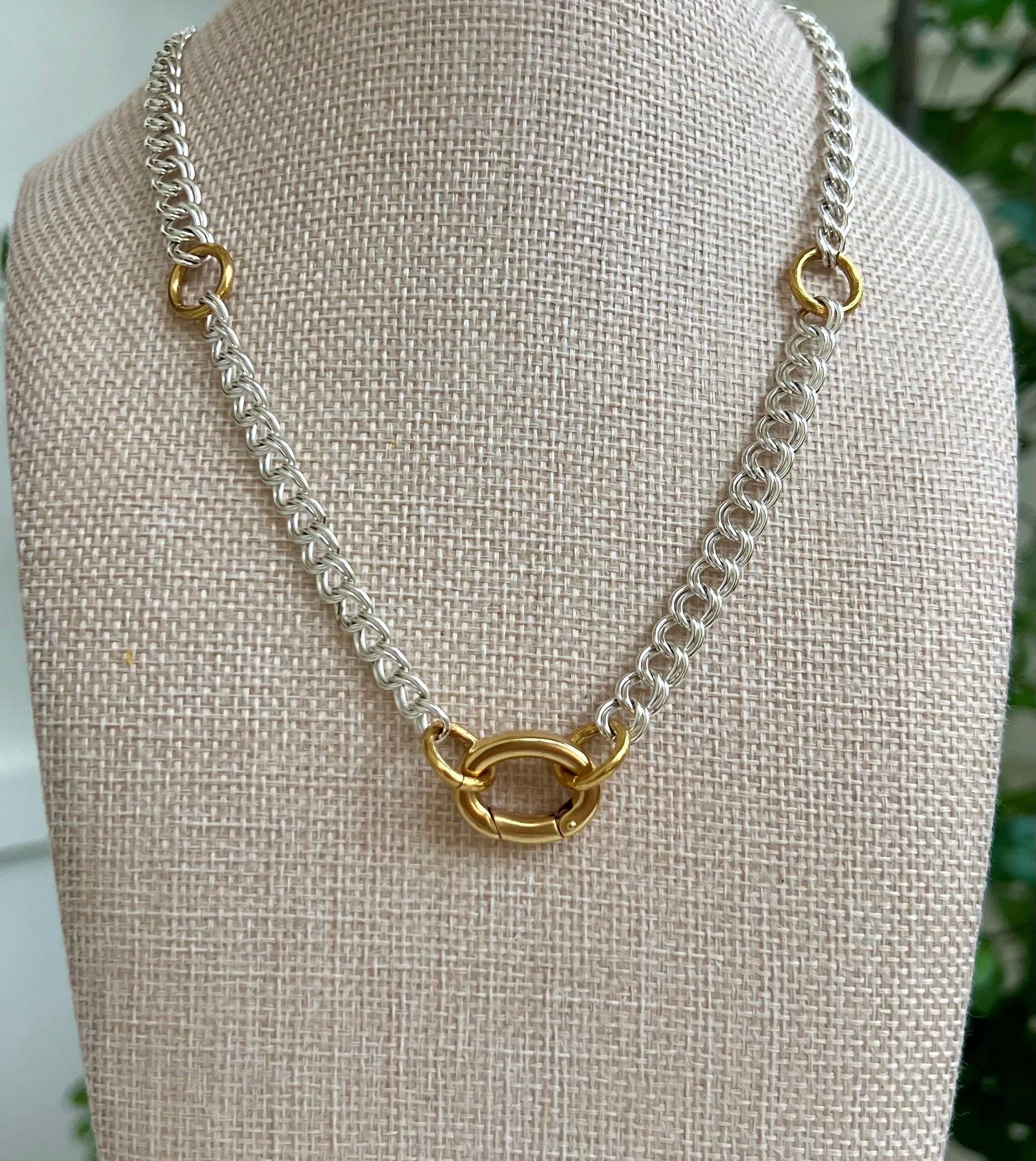 Mixed Metal Curb Chain Necklace: Silver & Gold Statement Clasp