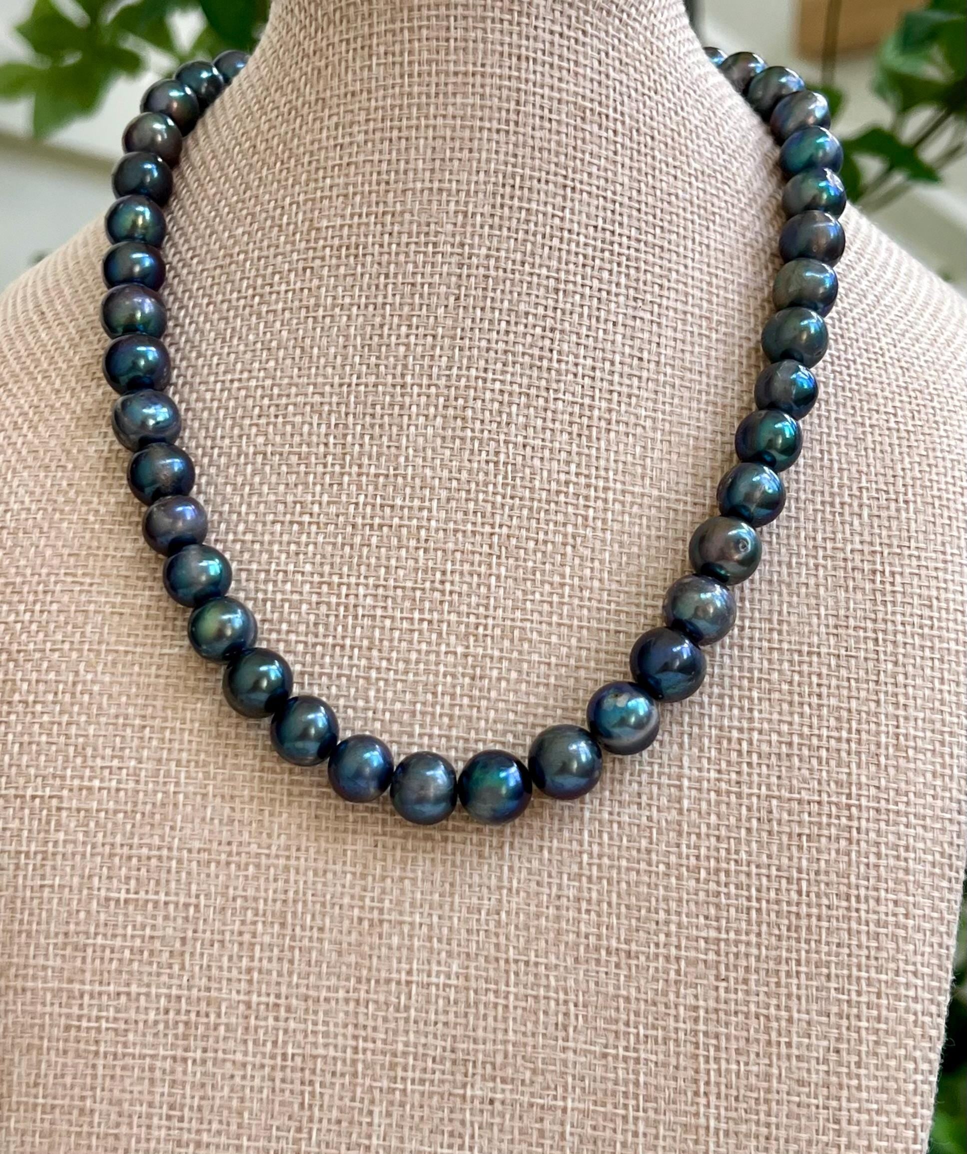 Natural Gemstone Necklace. 9-10mm Grade A Peacock Pearls with an 18k gold filled lobster clasp. Arrives thoughtfully packaged in an eco-friendly kraft box wrapped in ribbon, ready for gifting or keeping for yourself.