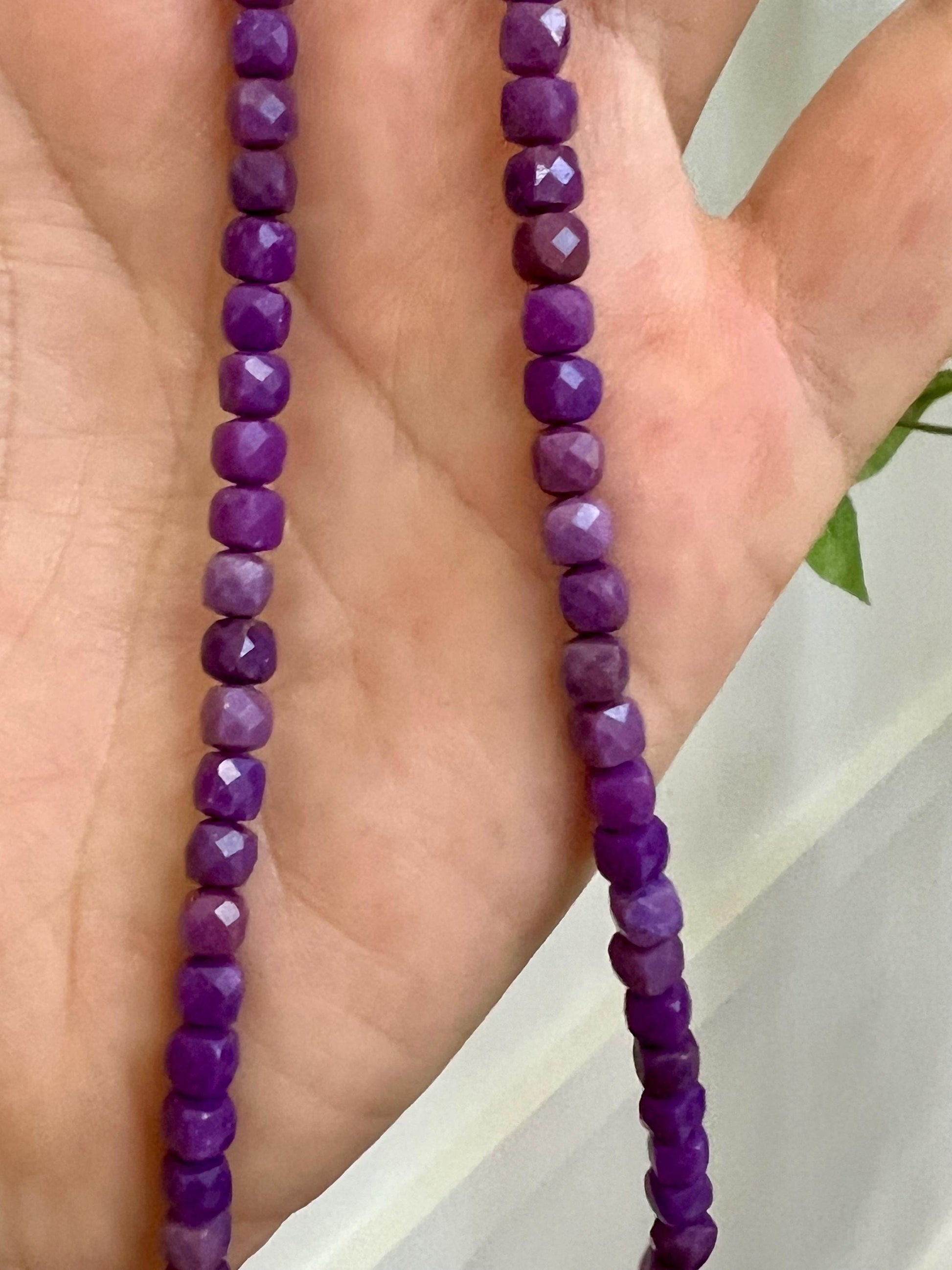 Natural Gemstone Necklace. Cubed Phosphosiderite stones are 4mm faceted cubed with an 18k gold filled lobster clasp. Simple layering necklace. Arrives thoughtfully packaged in an eco-friendly kraft box wrapped in ribbon, ready for gifting or keeping for yourself.