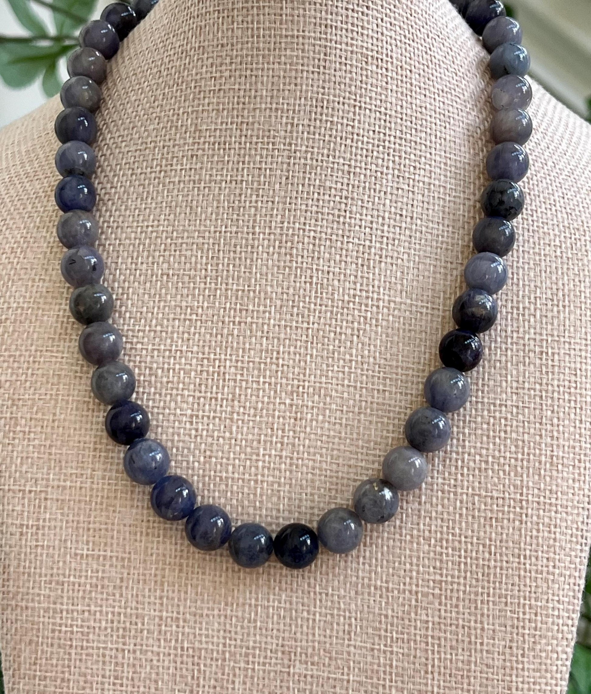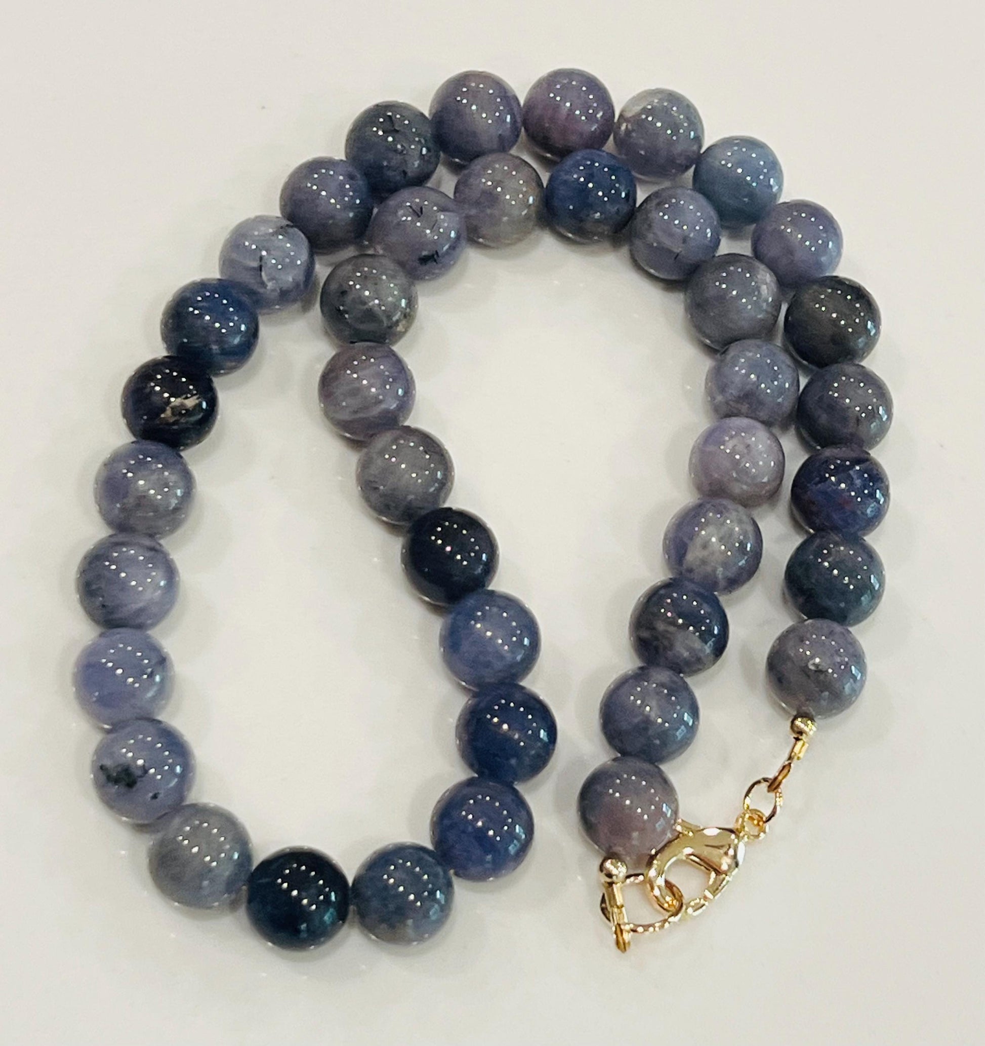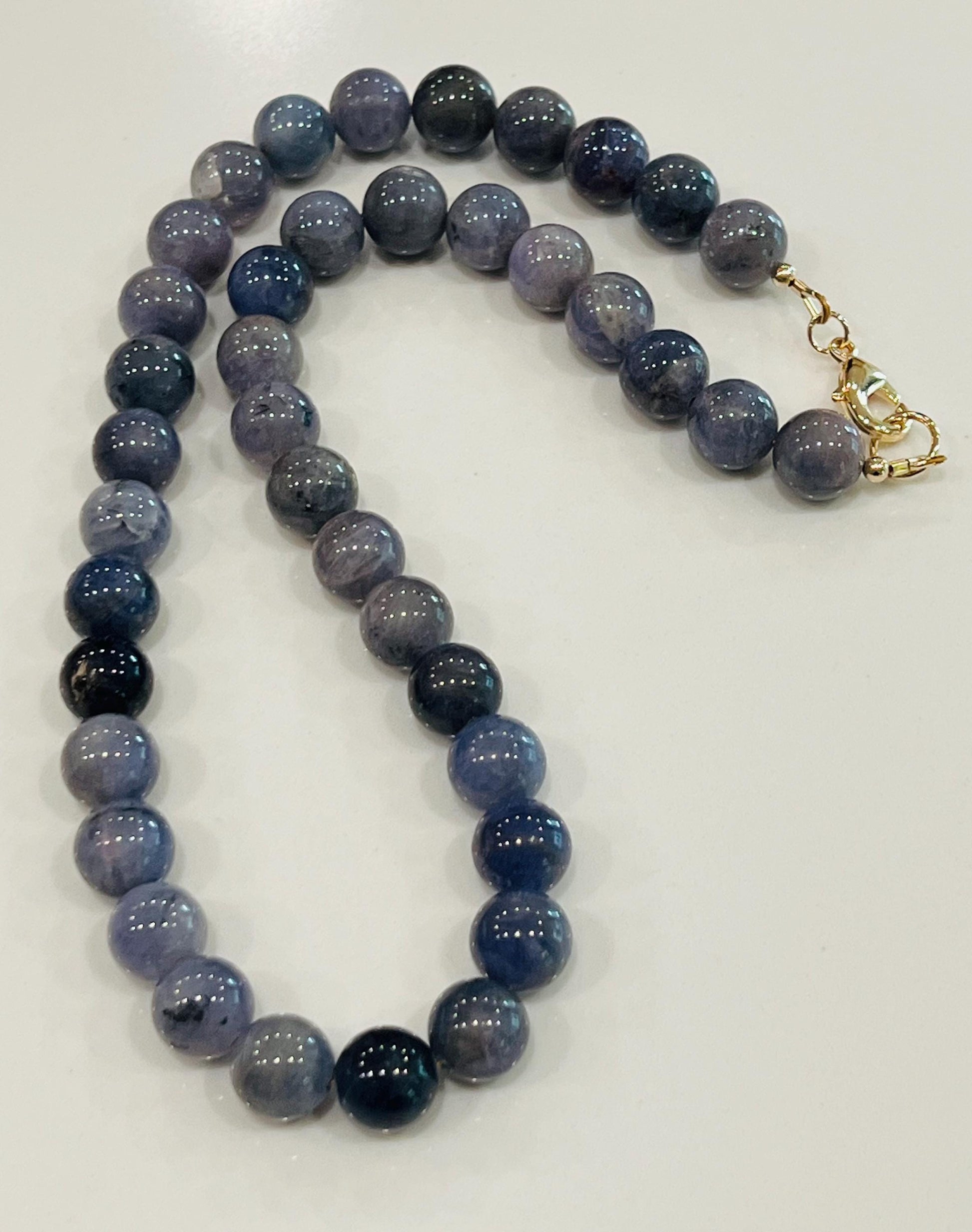 Natural Gemstone Necklace. Natural Tanzanite smooth round 10mm Natural Tanzanite stones. 18k gold filled lobster clasp. Arrives thoughtfully packaged in an eco-friendly kraft box wrapped in ribbon, ready for gifting or keeping for yourself.